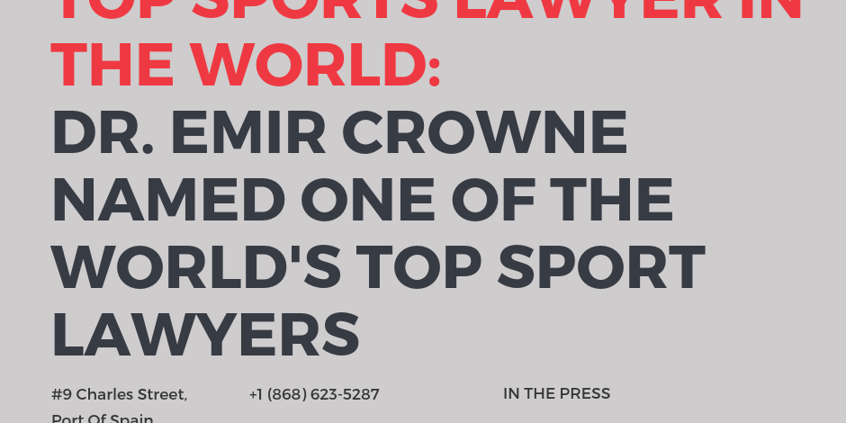 WhosWhoLegal has selected Trinidadian/Canadian attorney, Dr. Emir Crowne, as one of the best sports lawyers in the world. He is the first Caribbean sports lawyer to be recognised in this manner.